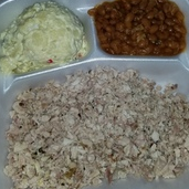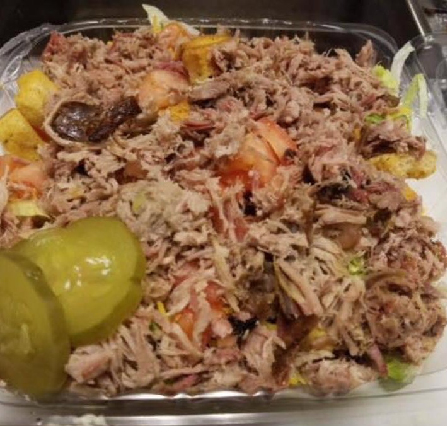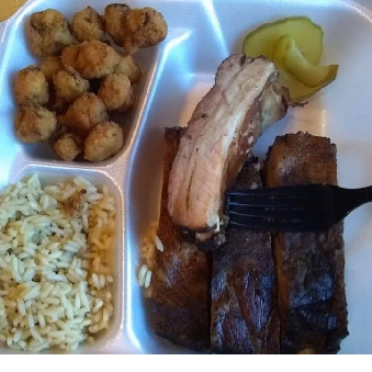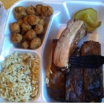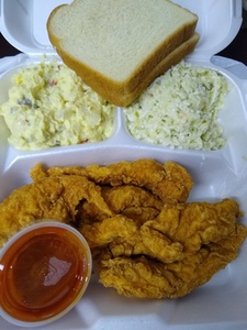 All plates come with pickles, homemade pound cake & bread. Choice of two sides: rice, slaw, beans, potato salad, french fries, or chips.