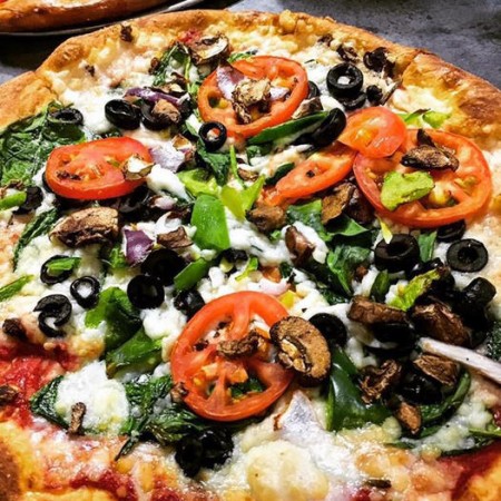 Mellow takes veggies to the MAX. This pie starts with Mellow red sauce layered with mozzarella, spinach, green peppers, sliced mushrooms, sweet onions, black olives and Roma tomatoes.