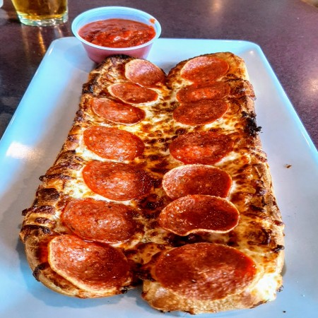 Mellow red sauce, mozzarella, and pepperoni on Mellow's crust, buttered and sprinkled with Parmesan.